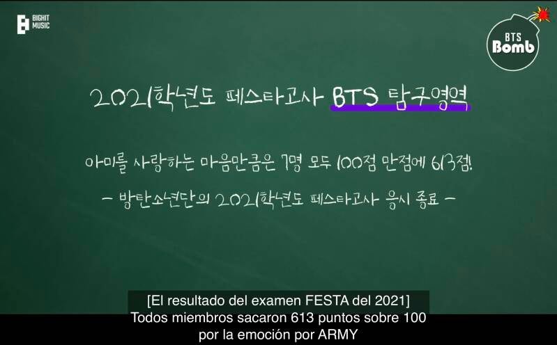 El año 2021, iniciaron lanzando una Bangtang Bomb. Se trata de un “detrás de escenas” del Exámen del Año Escolar 2021, cuyo objetivo es mostrarnos cuánto se conocen entre ellos y, para variar, todos reconocen que ARMY los conoce mejor. Los miembros, de manera individual, se disculparon por los errores que tuvieron en el examen, Es de resaltar la lealtad del Staff, quienes les proporcionaron una “Ayuda extra” para responder a las preguntas. Es divertido y entretenido verlo,
