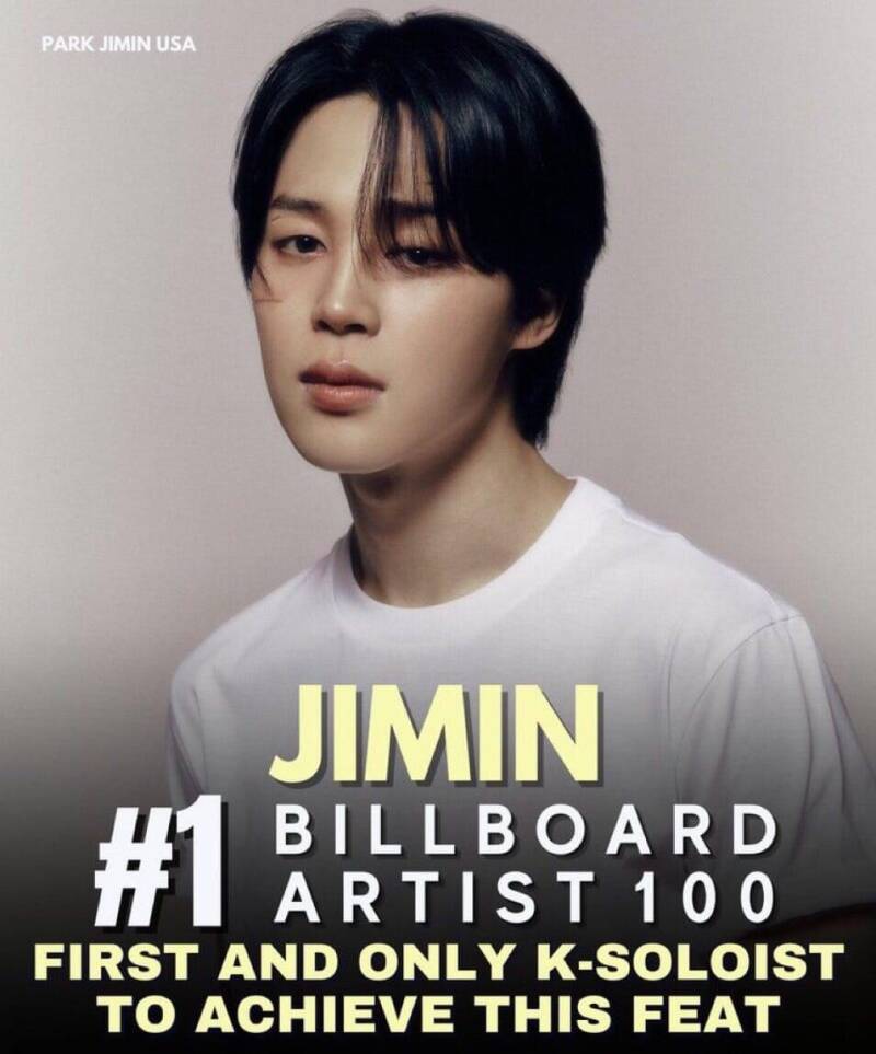 Sin duda alguna, es el hecho de que Jimin es el Único Solista Asiático en lograr el #1 Billboard Artist 100 en los últimos 30 años, también es el Primer y Único Solista Coreano en lograr este Hito. Es por ello que sus fanbases, con gran orgullo, afirman que JIMIN pavimentó el camino para que, en el futuro, otros solistas también lo logren.